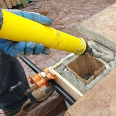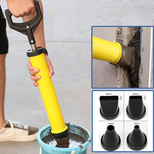 Der innovative Handinjektor ermöglicht ein schnelles und einfaches Verfugen oder Füllen von Rissen in der Wand mit Zementmasse.